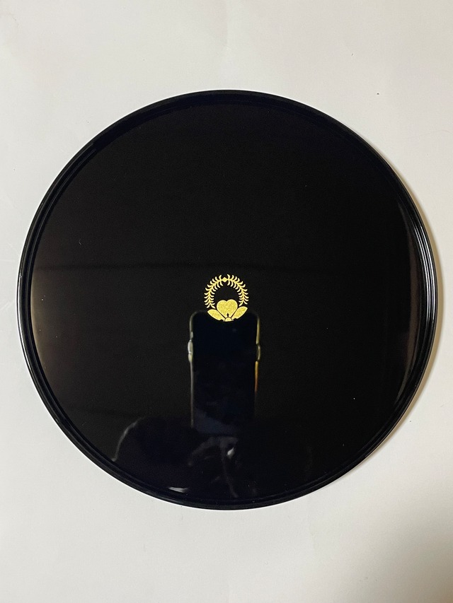花柳流三ツ桜の金紋が入ったお盆です。贈答品としても喜ばれる品です。 サイズは直径27cmになります。 ご希望の方は無料で包装させていただきます。