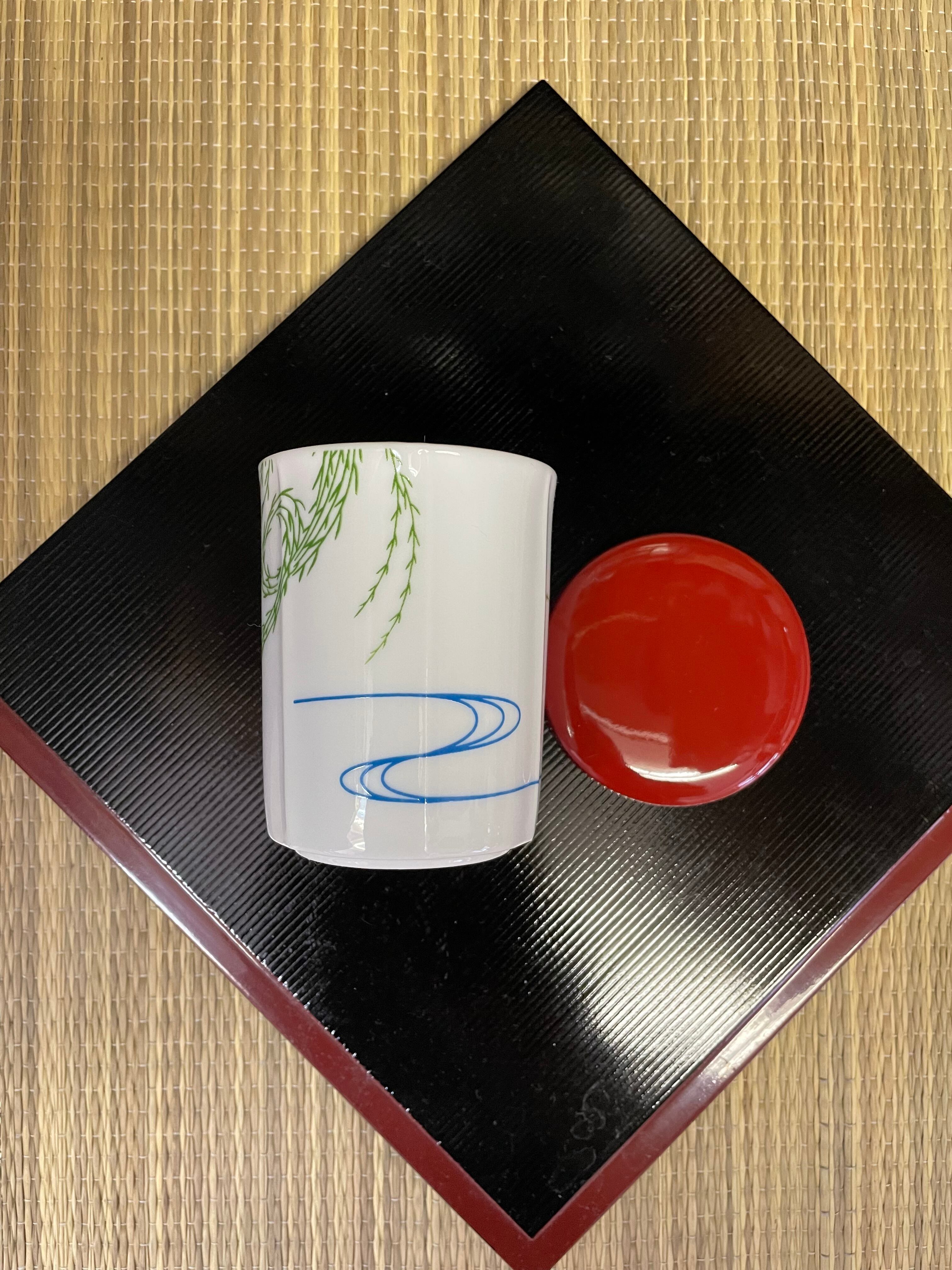 贈答品 たち吉湯呑 湯吞み 結び柳に流水 蓋付き・箱入り