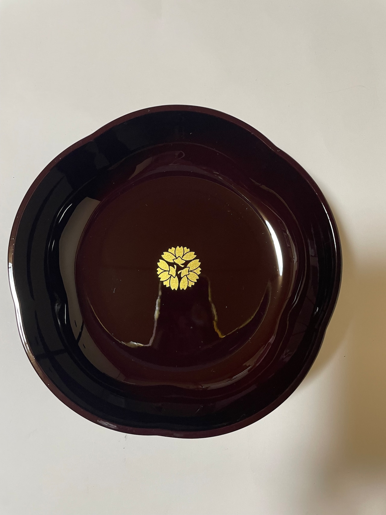 山中塗 菓子鉢 タメ塗菓子鉢 三ツ桜金紋入り 15-891