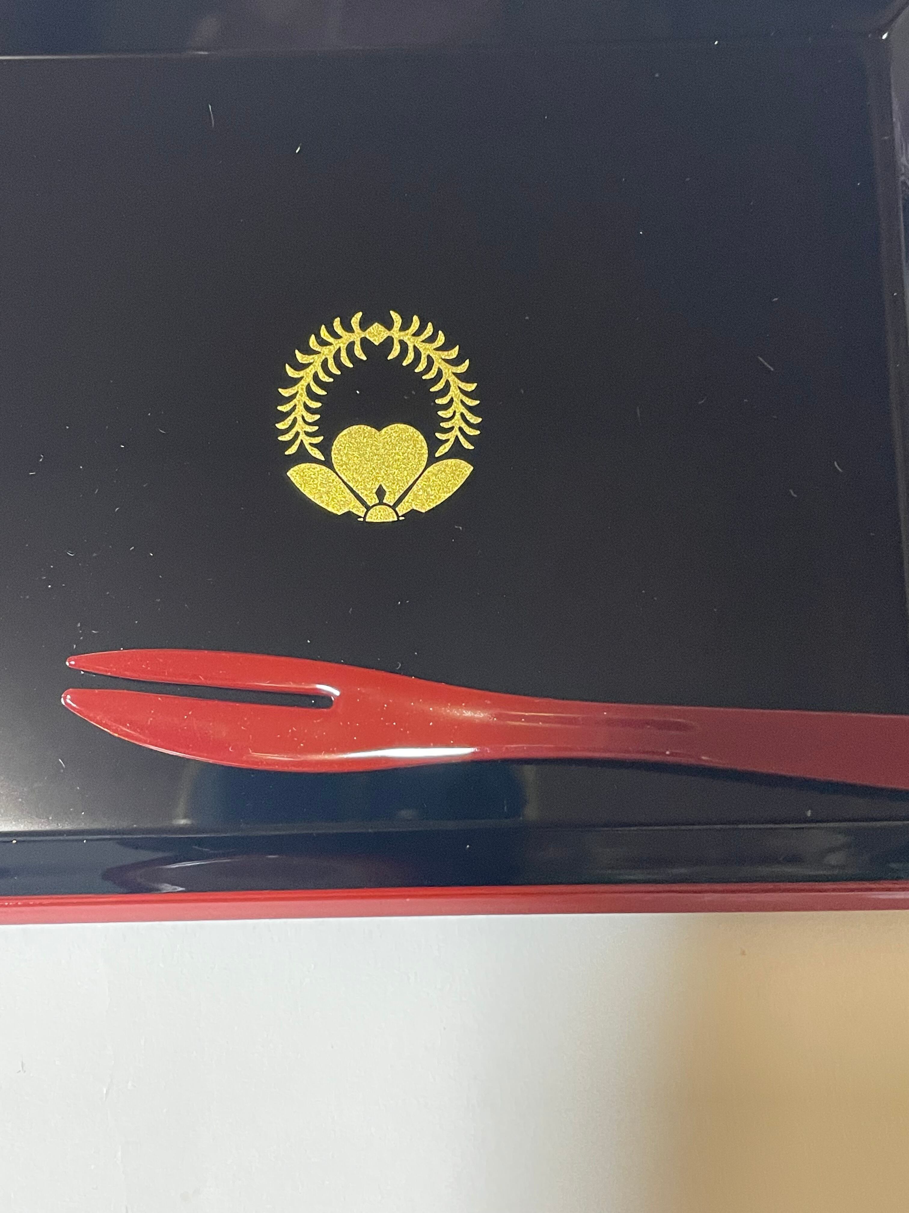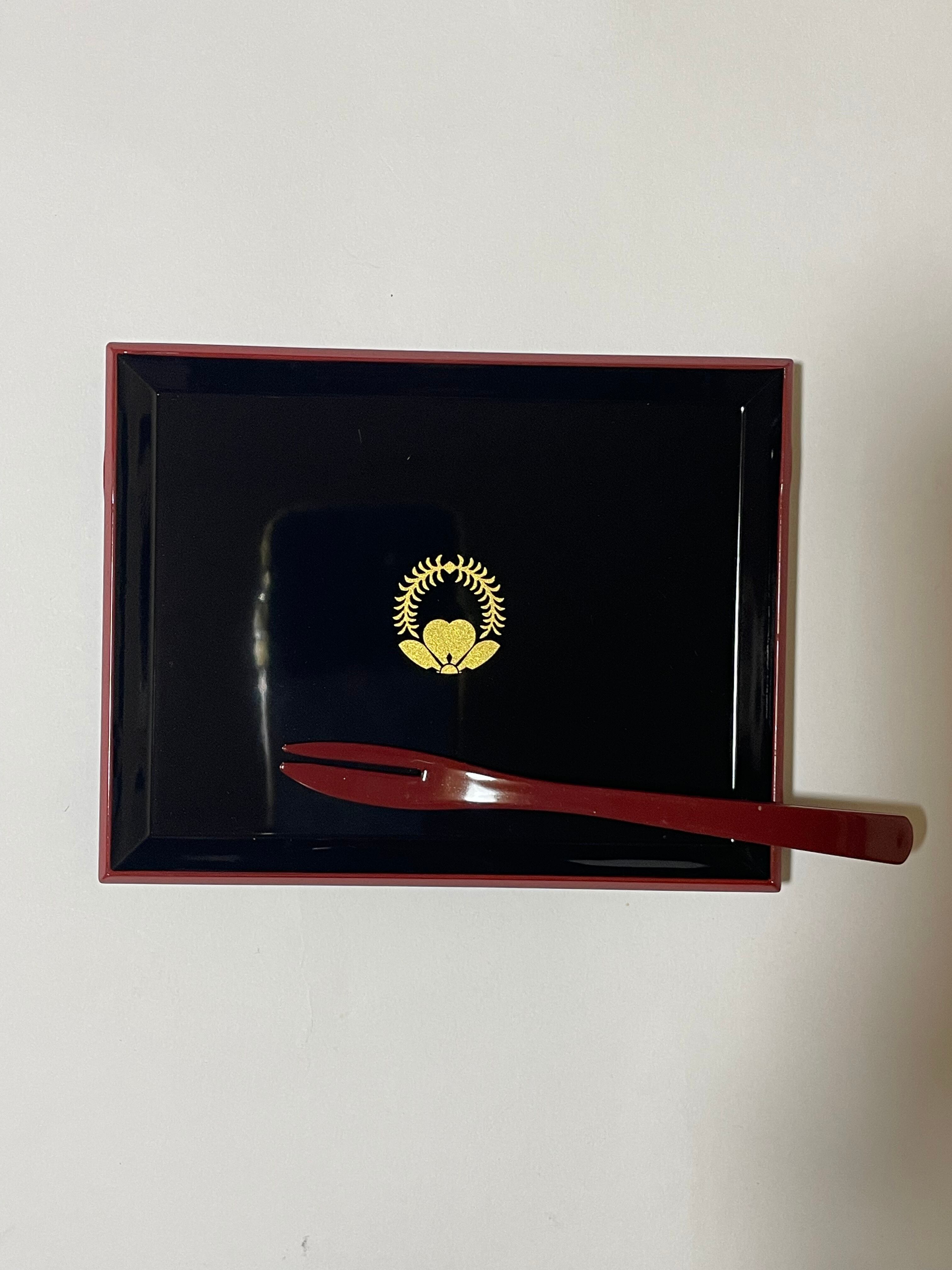 若柳流の金紋が入ったフォーク付き小皿です。贈答品としても喜ばれる品です。