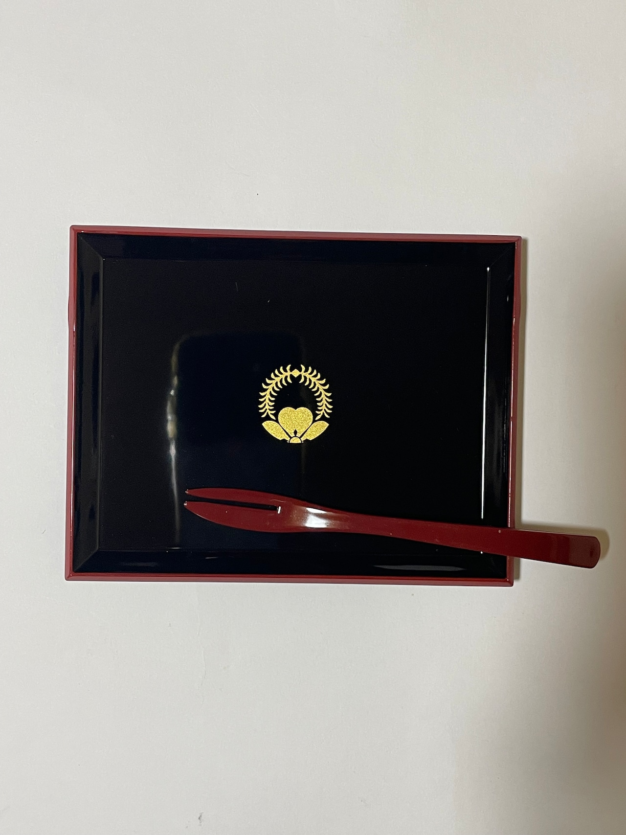山中塗 小皿 フォーク付小皿 若柳金紋入り 15-892