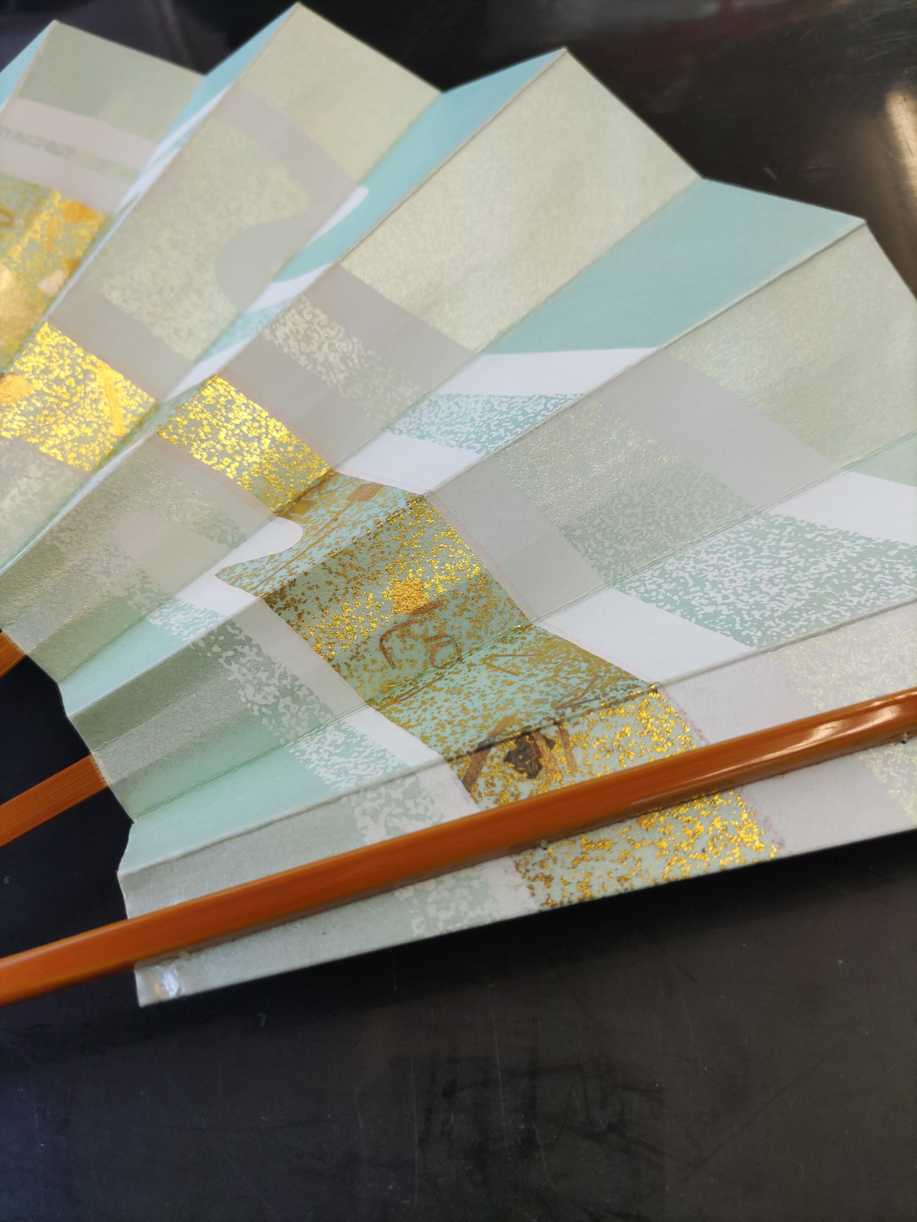 舞扇 15-43 金箔流水 水 春ケイ 9寸5分