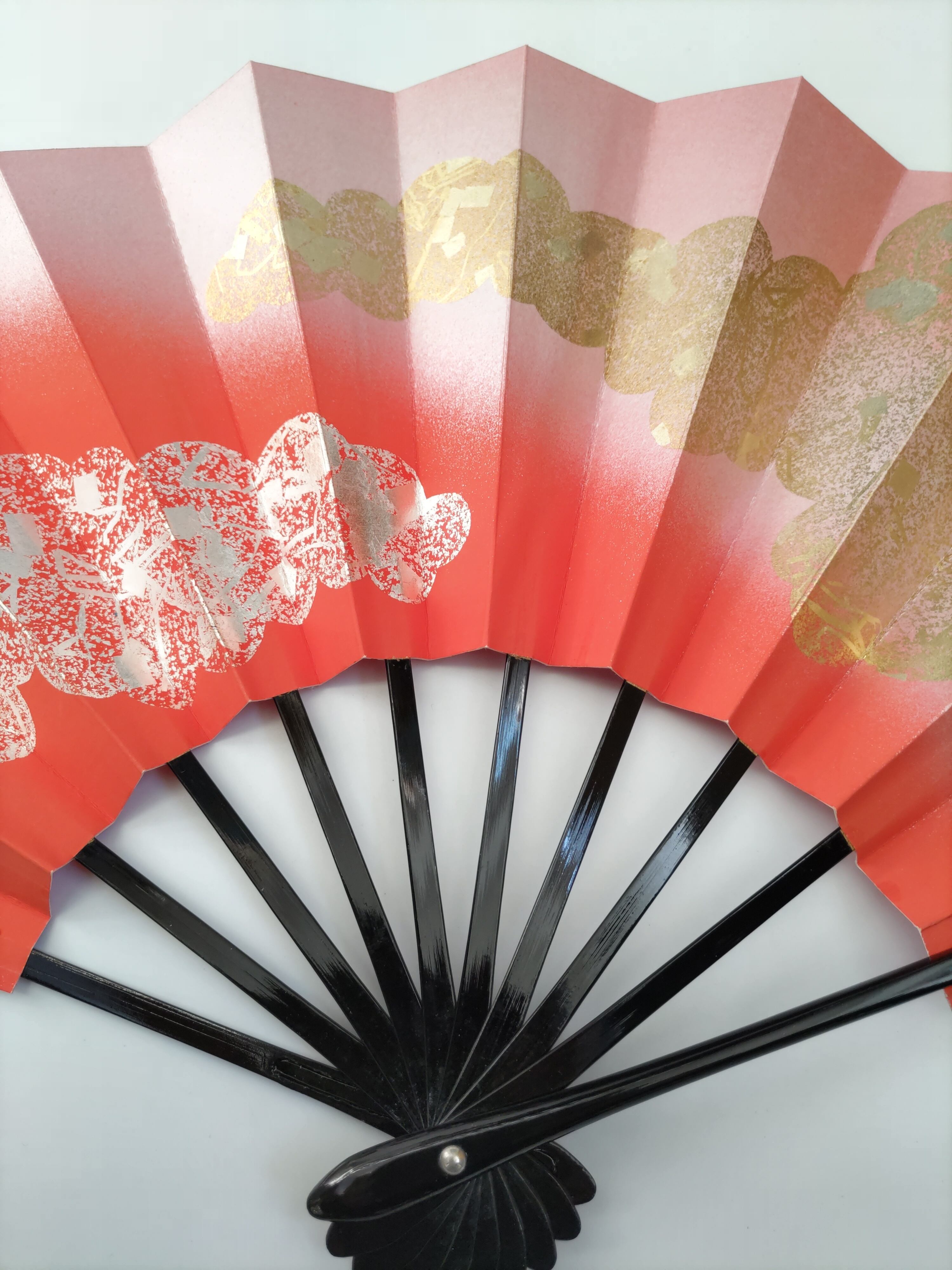 舞扇 15-166 金銀雲 赤 黒ヌリ 9寸5分