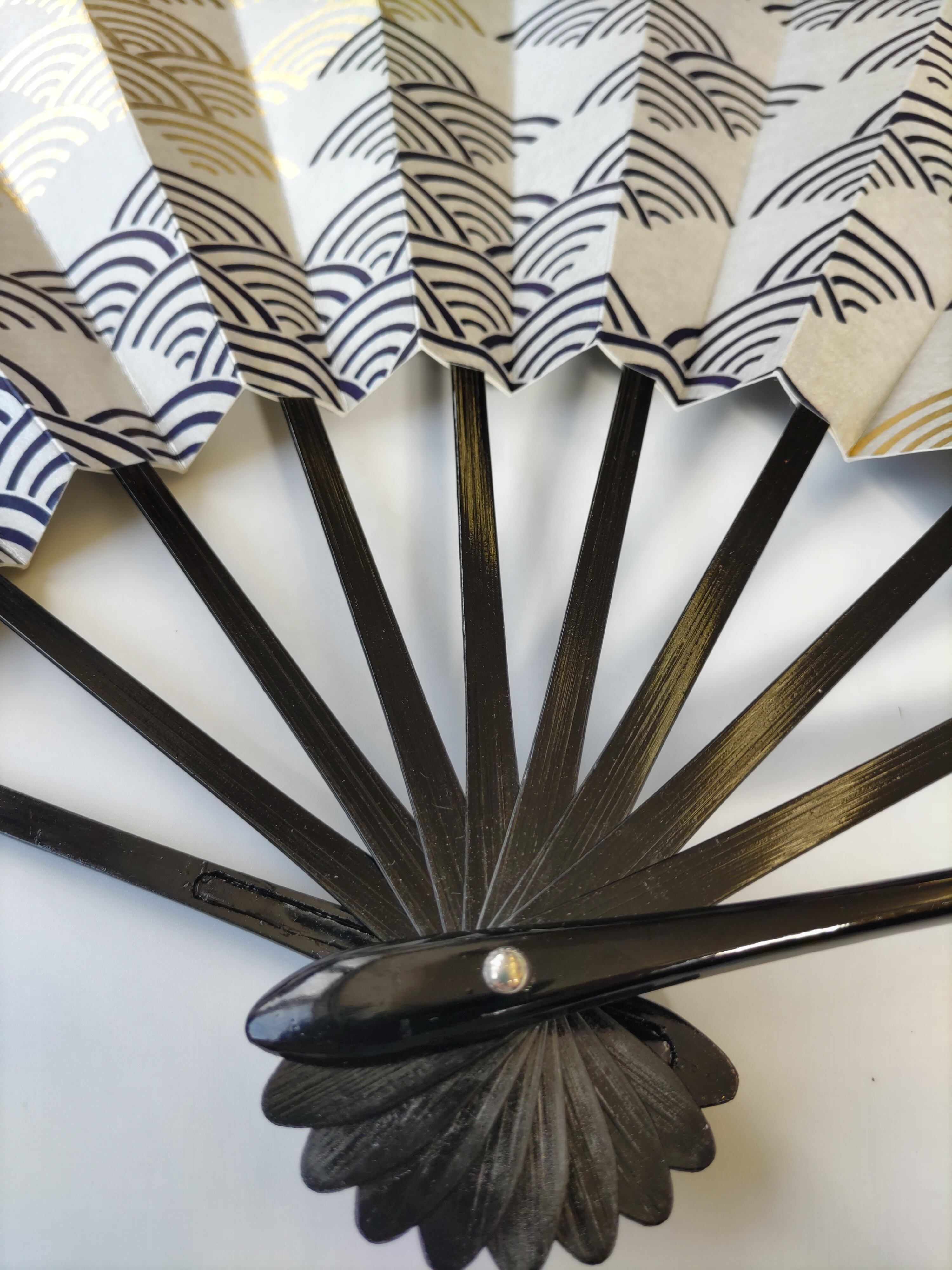 舞扇 15-192 金紺青海波 黒ヌリ 9寸5分