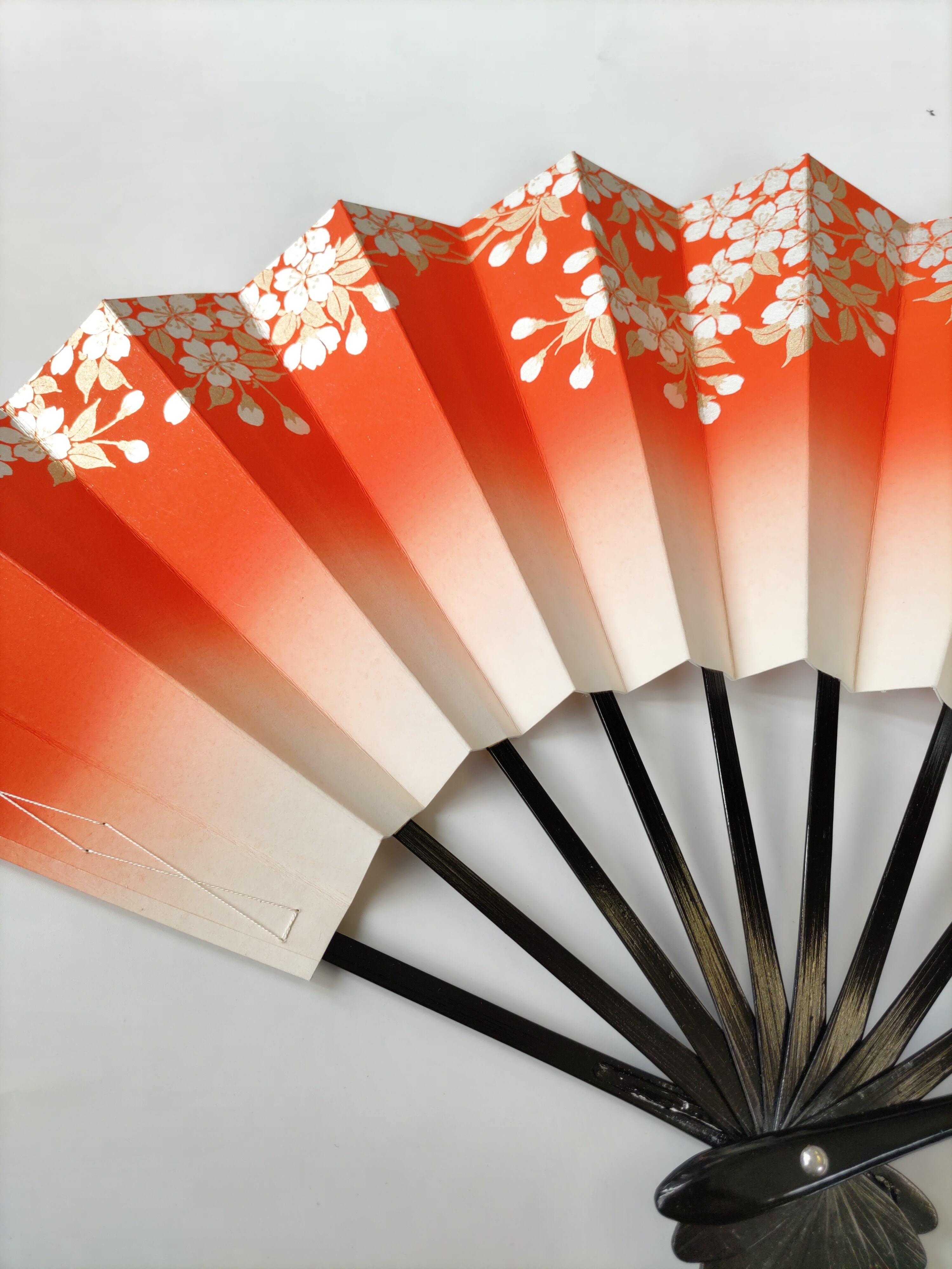 舞扇 15-221 赤ボカシ 銀桜 黒ヌリ 9寸5分