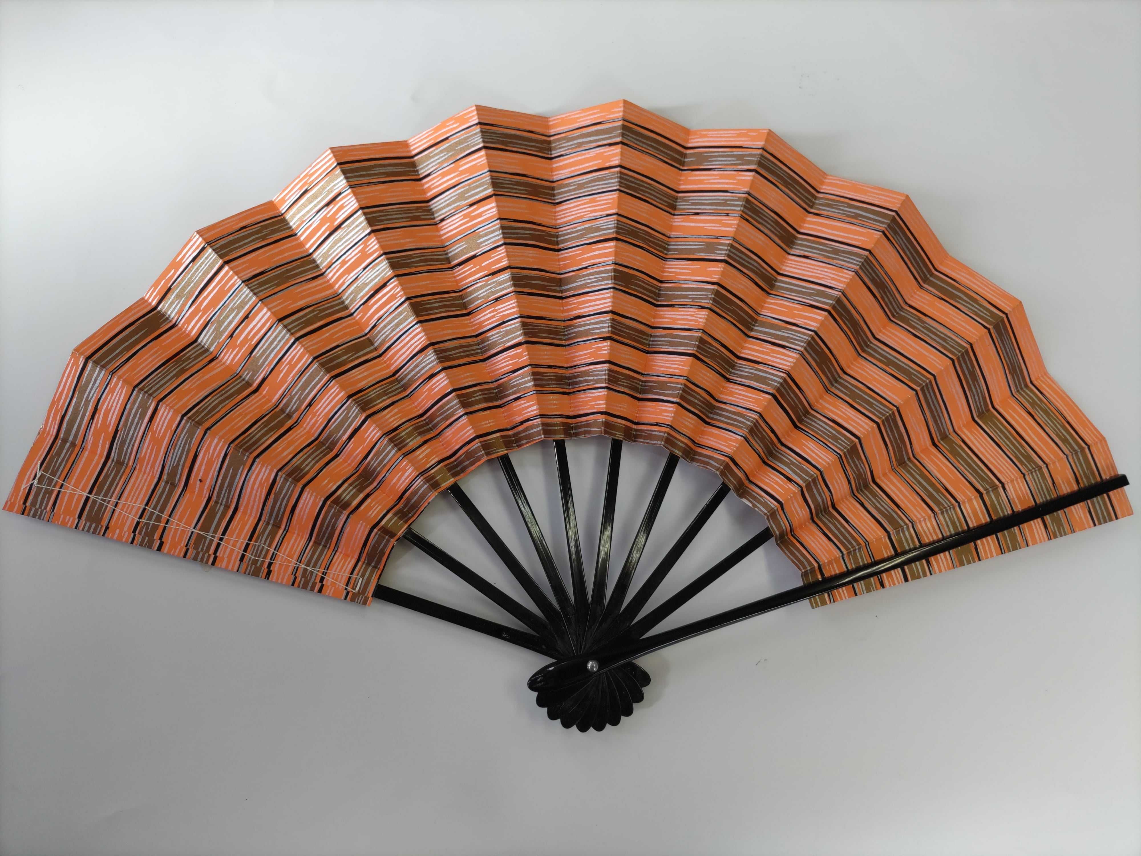 朱色と紺色の筋がバランス良く入った、両面同柄のお扇子。