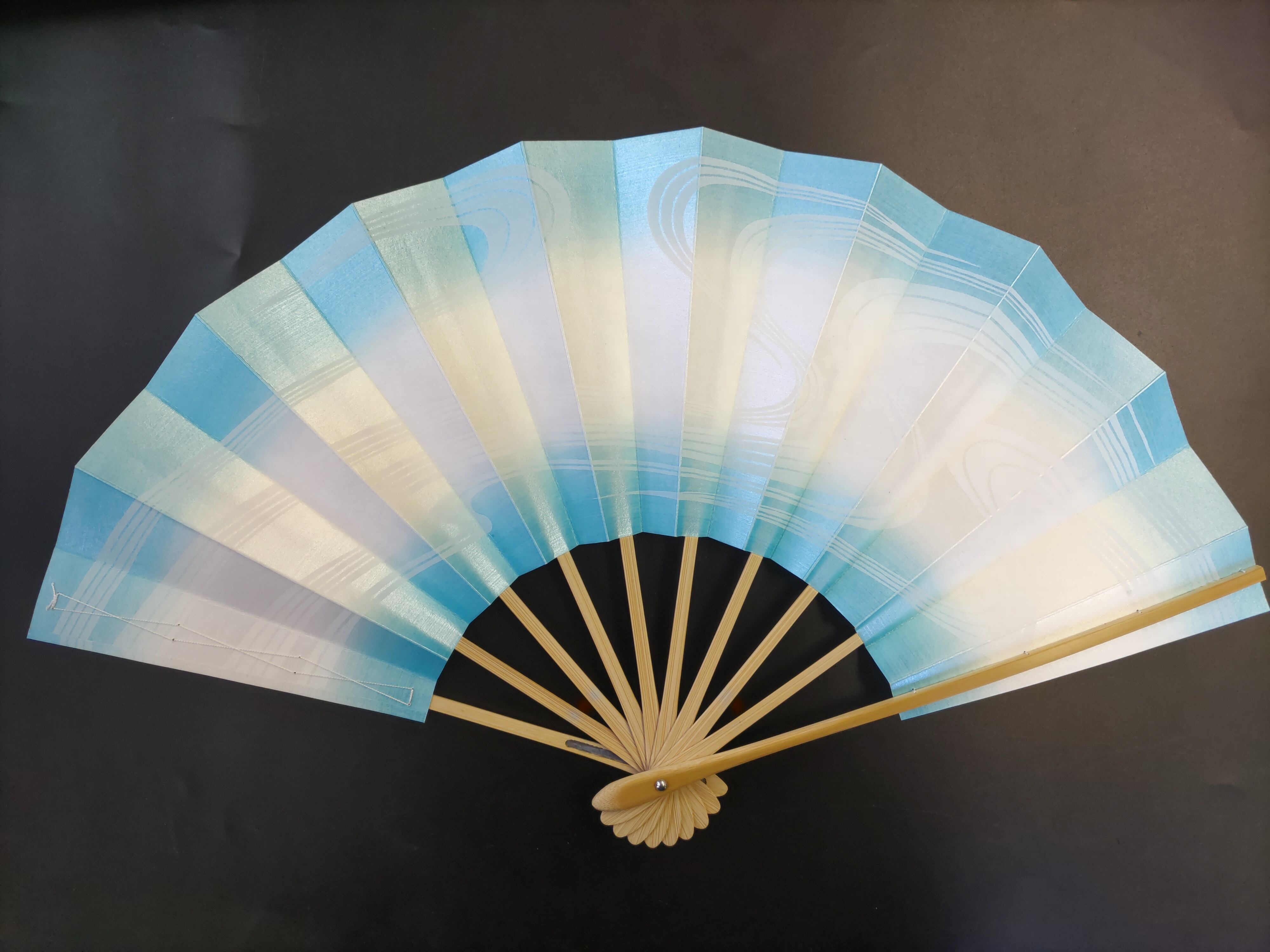 天地水色地に白の流水柄が入った、両面同柄のお扇子。